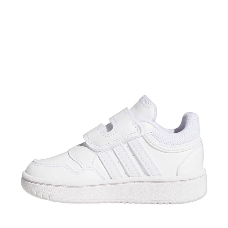 adidas Hoops 3.0 Çocuk Ayakkabıları Beyaz GW0442, günlük giyim için mükemmeldir. Sentetik deri üst kısım, rahat ayak desteği sağlar. Tekstil astar. Velcro kayışı. Yumuşak, tekstil yaka detayı. Kauçuk platform taban. Kaymaz taban.