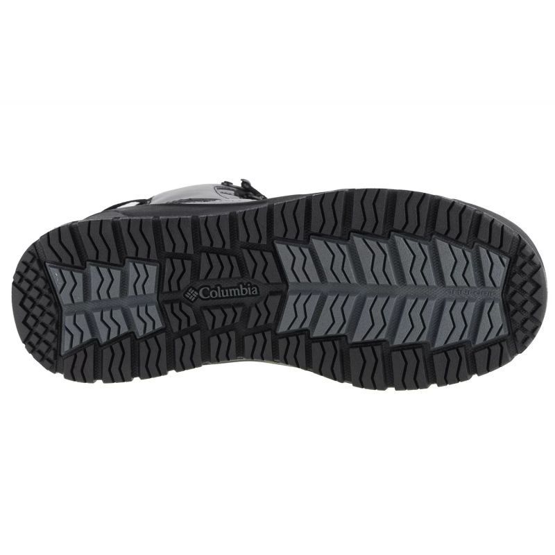 Columbia erkek yürüyüş botları. Yüksek, bağcıklı model. Desenli kalın kauçuk taban. Malzeme: deri, sentetik Renk: siyah