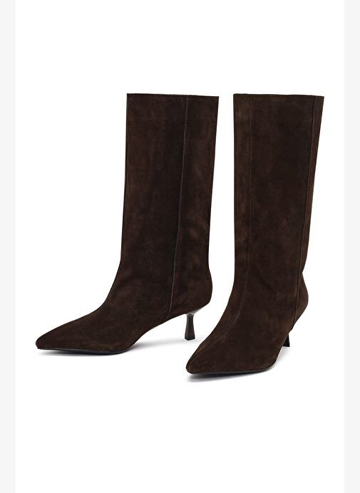 Derimod Kadın Kahverengi İnce Topuklu Süet Deri Çizme 25AFD490510