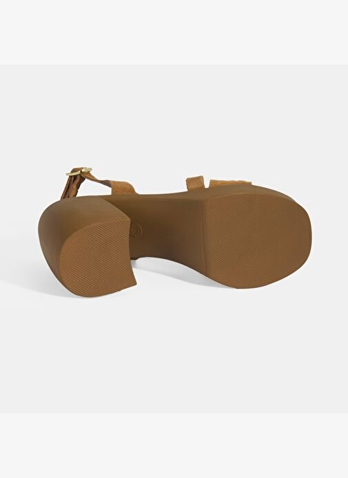 Desa Kadın Taba Ayarlanabilir Tokalı Süet Topuklu Sandalet