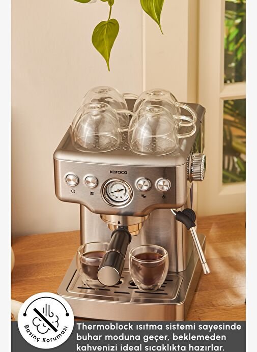 Karaca Süt Köpürtücülü, 20 Bar Basınçlı, Espresso, Latte, Cappuccino, Americano Makinesi