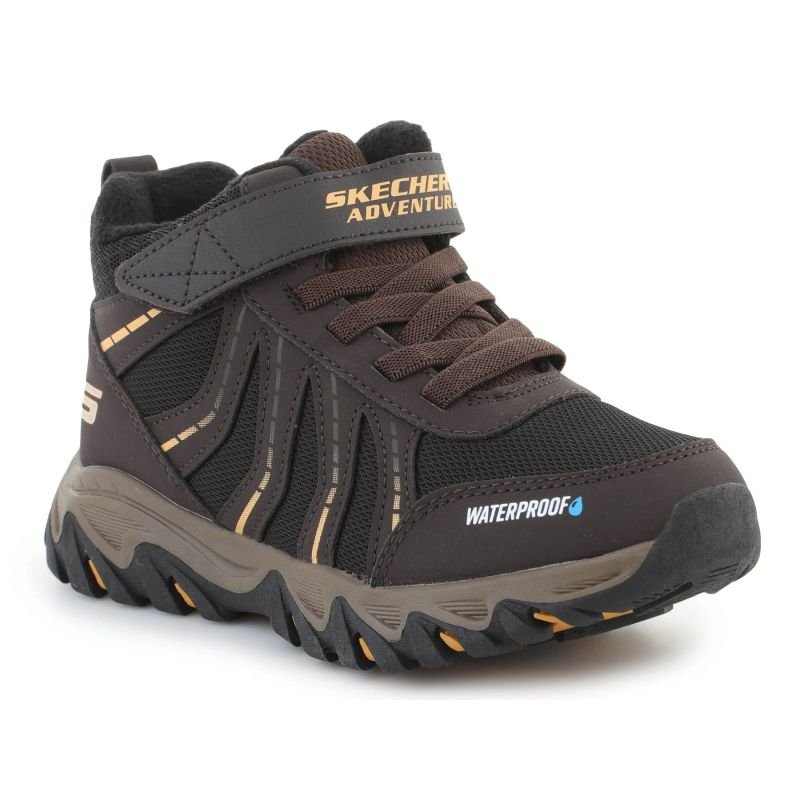 SKECHERS Rugged Ranger – Storm Trail 406412L-BKBR Siyah Kahverengi, değişken hava koşullarında iyi performans gösteren çocuklar için pratik spor ayakkabılarıdır. Su geçirmez teknoloji sayesinde ayakları yağmurda ve ıslak oyun sırasında nemden korur. Üst kısım, hafif bir tasarım ekleyen file ve sentetik malzemelerin kombinasyonundan oluşur. Ayakkabılar elastik bağcıklara ve hızlı ve güvenli bir uyum sağlayan Skechers Adaptive Closure özelliğine sahiptir, bu özellik özellikle küçük çocuklar için giymeyi ve çıkarmayı kolaylaştırır. İç kısımda yastıklı bir tabanlık şok emerken yürürken veya koşarken konfor sağlar, kaymaz taban ise çeşitli yüzeylerde stabilite ve çekiş sunar. Skechers® logosu, modelin sportif stilini vurgular. Siyah/Kahverengi renk şeması sayesinde ayakkabılar, çocukların tarzlarına kolayca uyum sağlayabilen evrensel, dış mekan görünümüne sahiptir.